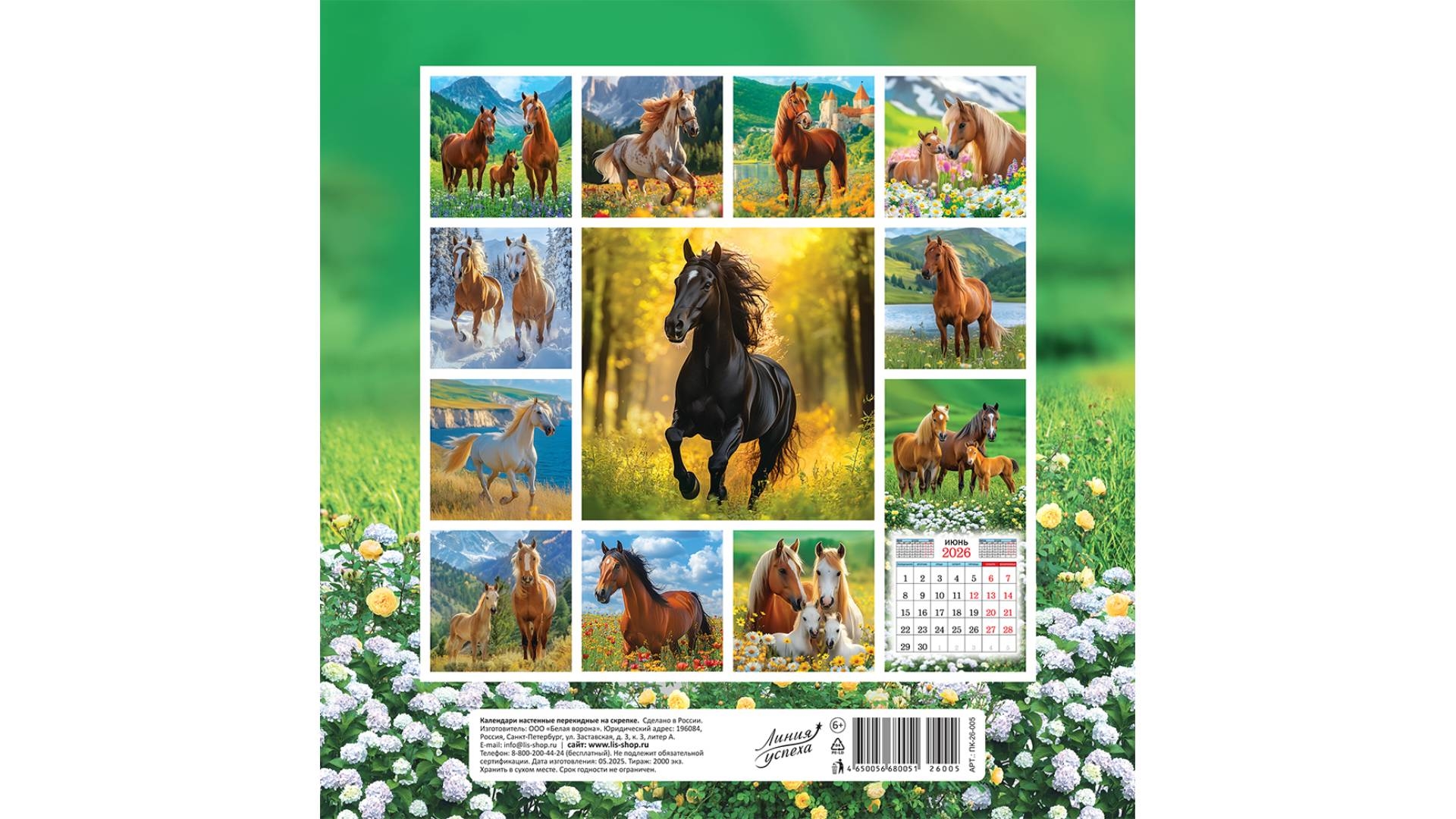 Календарь перекидной на скрепке, картон, 23х23,5 см. "Символ года (фото). Милые лошади", РФ [Артикул: ПК-26-005]