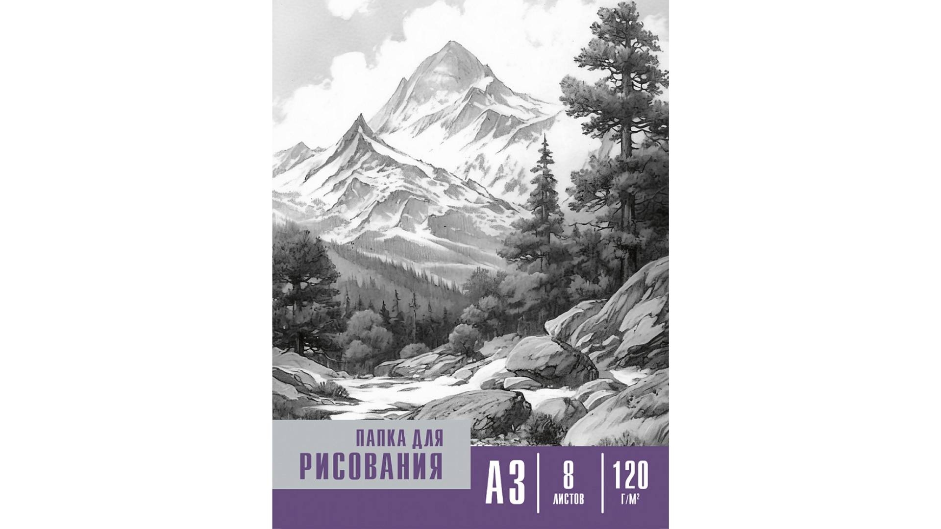 Папка д/рисования А3, 8л. ЧЁРНО-БЕЛЫЕ МОТИВЫ , 120г/м2, "Prof-Press", РФ