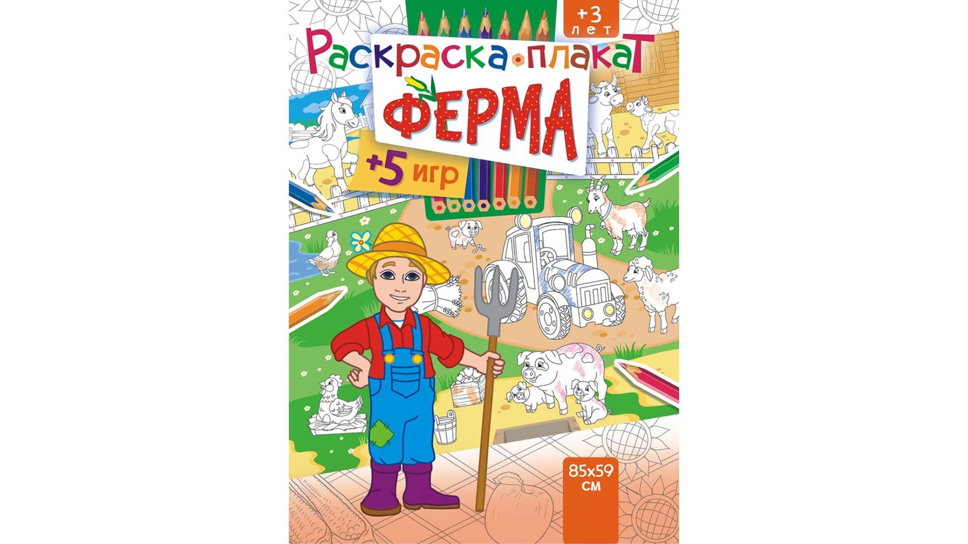Раскраска-плакат "Ферма" (А4 в сложенном виде), РФ [Артикул: РКП-007]
