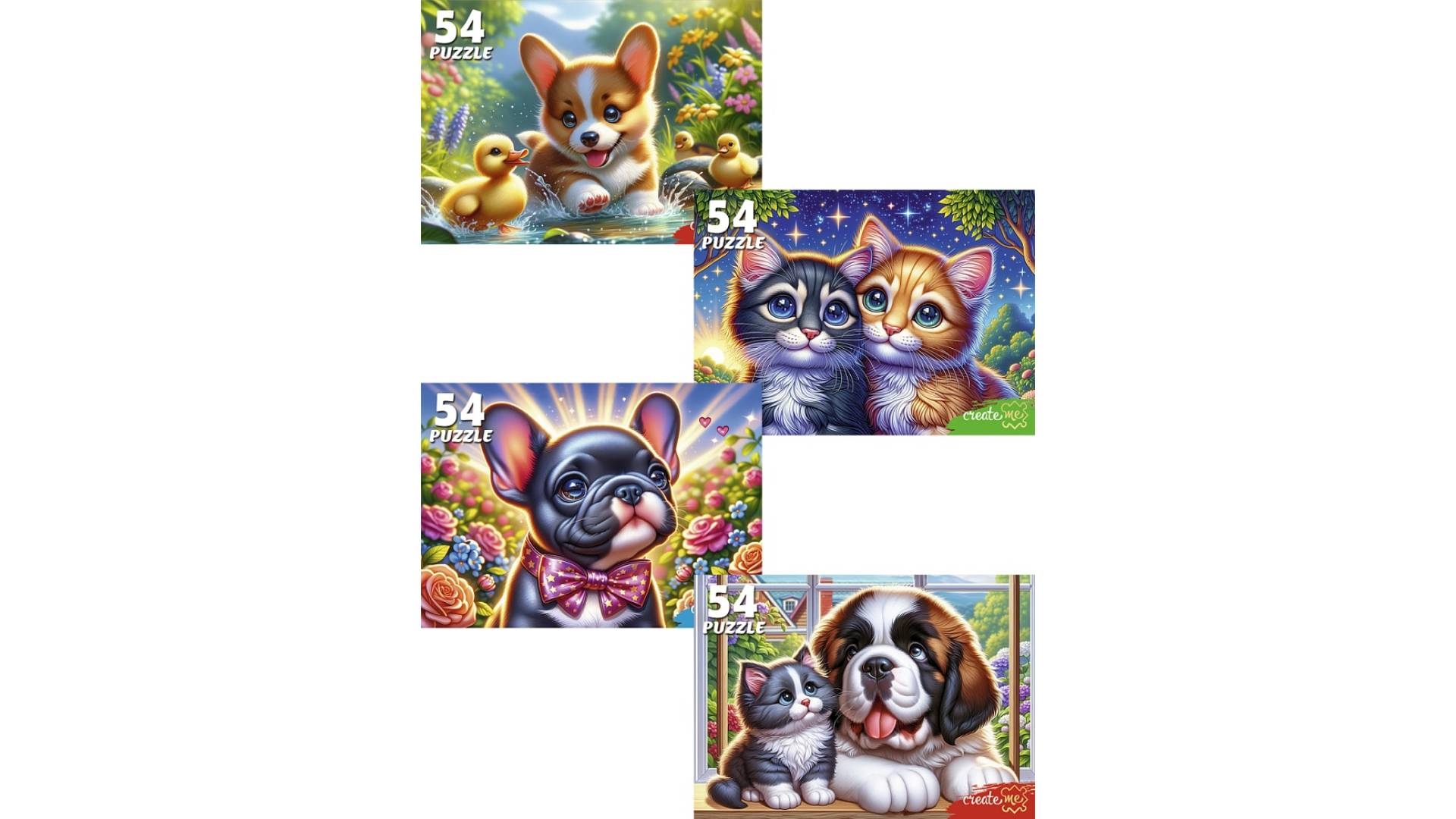 ПАЗЛЫ 54 элемента. КОТЯТА С ЩЕНКАМИ в асс., ООО "Рыжий Кот", РФ [Артикул: П54-8712]