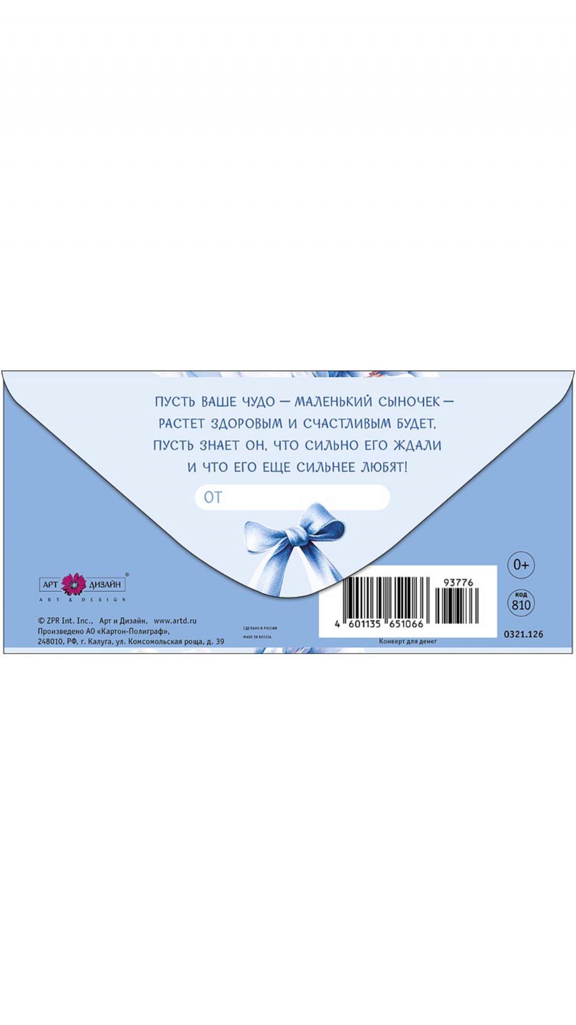 Конверт д/денег "С рождением мальчика" (810), "Арт&Дизайн", РФ [Артикул: 0321.126]