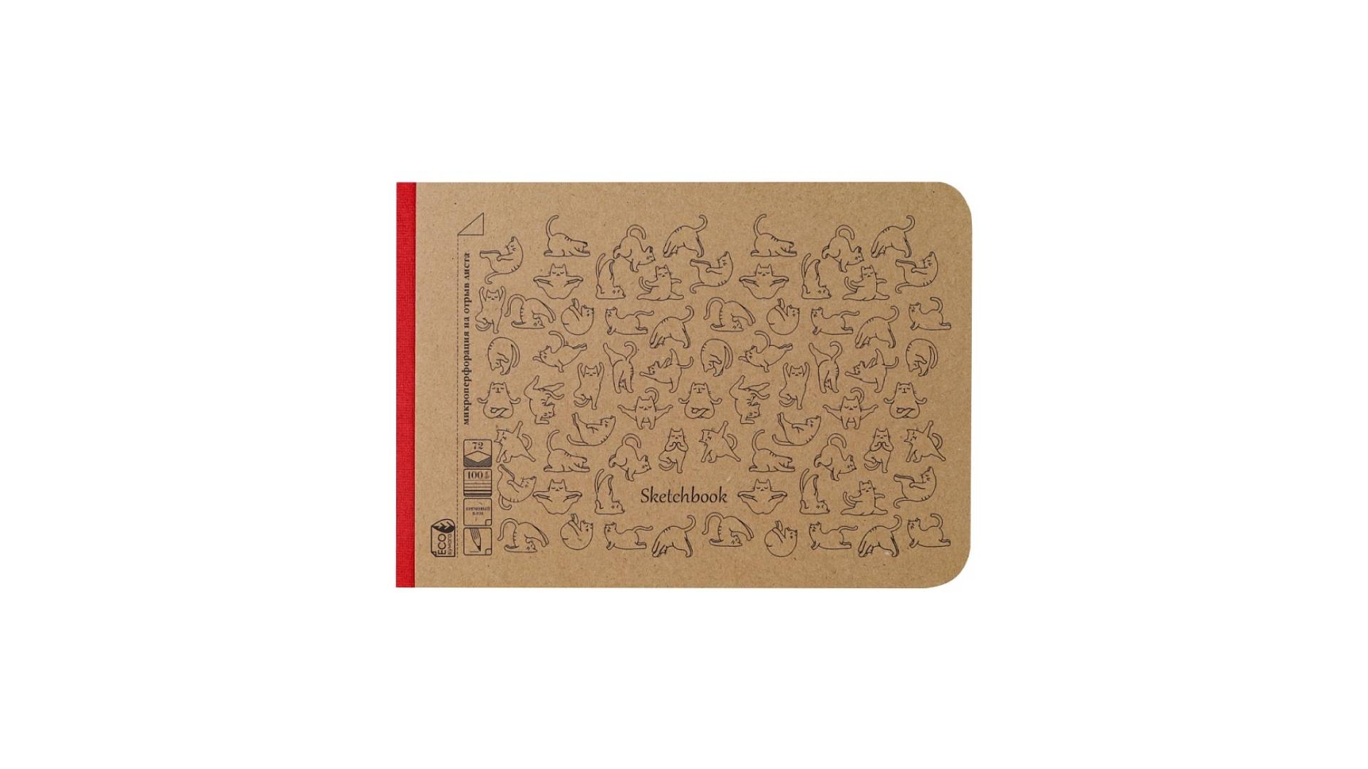 Скетчбук В6, 72л., "КОШАЧЬЯ ГИМНАСТИКА", ткан.корешок,крем бум100гм/2, "Prof-Press", РФ [Артикул: 72-7812]