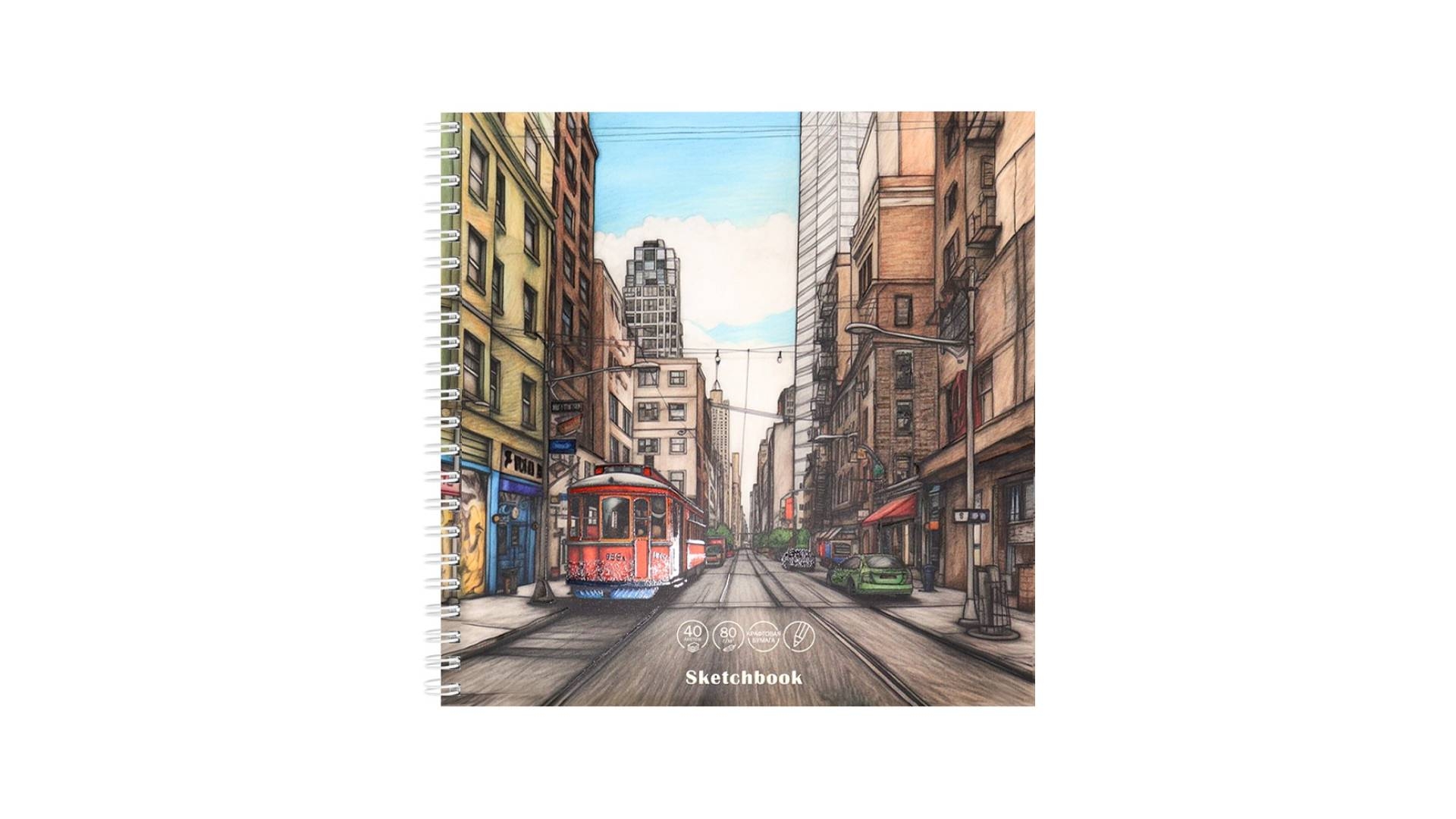 Скетчбук 40л., крафт, "ГОРОДСКОЙ ПРОСПЕКТ" (190х190мм), "Prof-Press", РФ [Артикул: 40-0312]