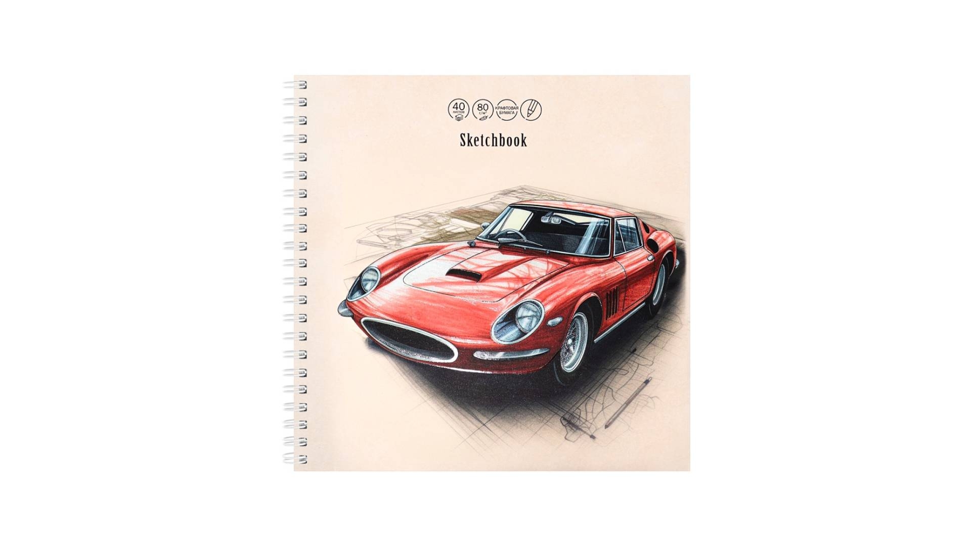 Скетчбук 40л., крафт, "РИСУНОК АВТОМОБИЛЯ" (190х190мм), "Prof-Press", РФ [Артикул: 40-0314]