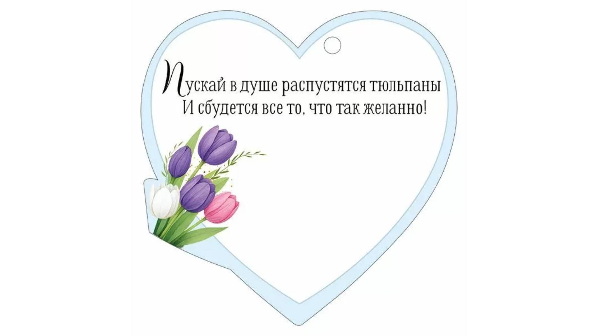 Мини открытка-бирка 9,4х9,4см., "8 марта" (код.025), ООО "Империя Поздравлений", РФ