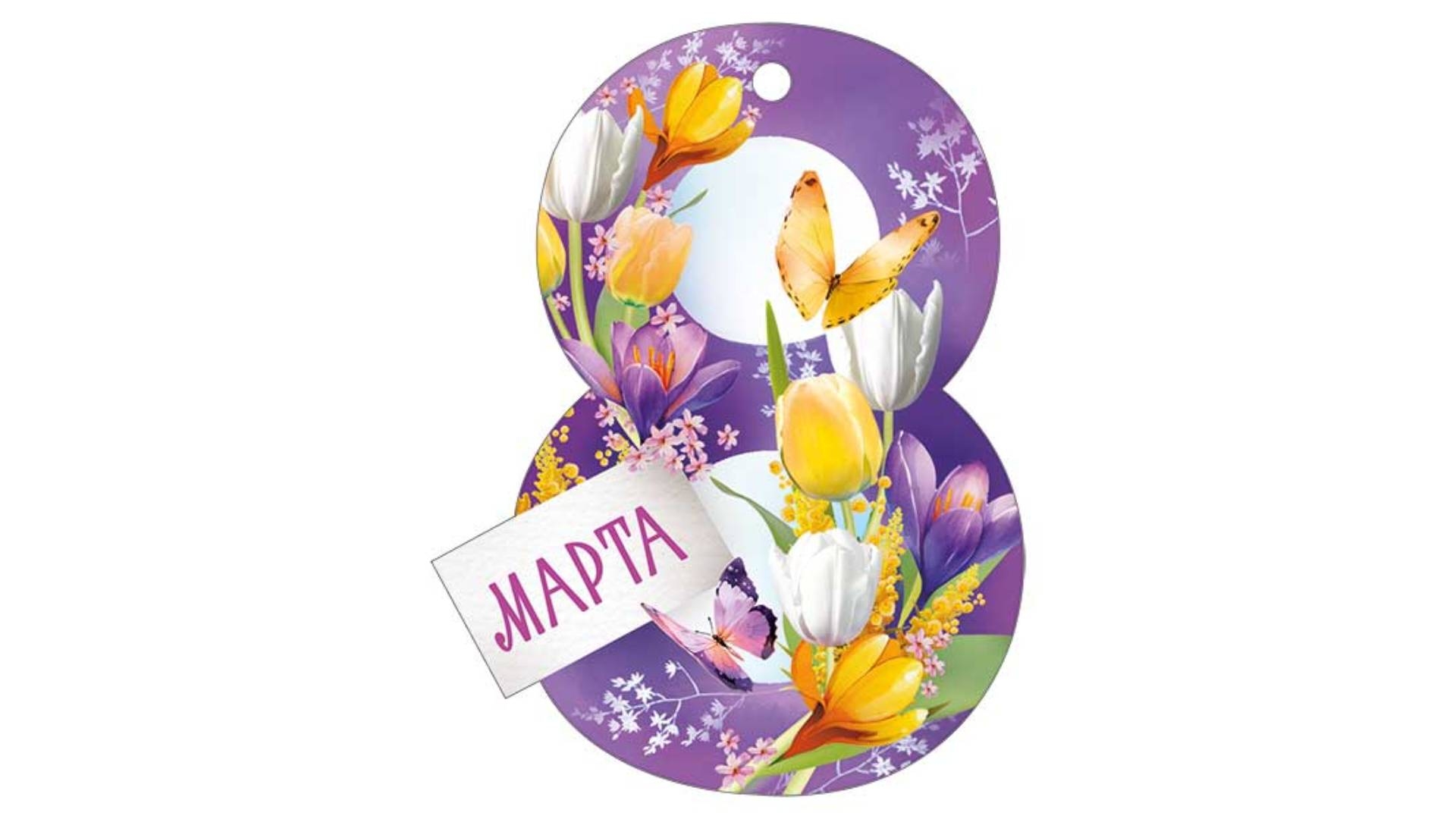 Мини открытка-бирка 9,9х7,6 cм., "8 марта" (код.025), ООО "Империя Поздравлений", РФ [Артикул: 81.865.00]